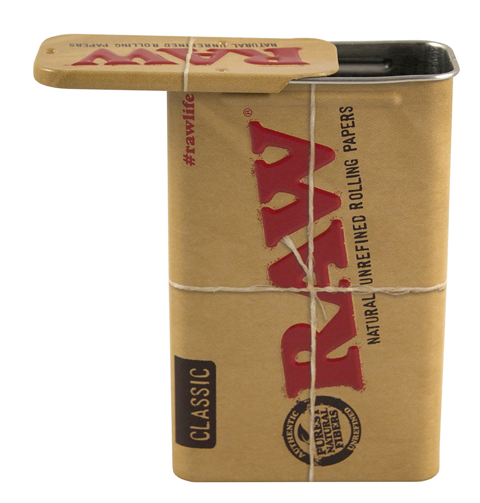 קופסאת אחסון RAW ממתכת בצורת מלבן, פתיחה בהזזה. שומרת על טריות באופן מוגבל. מיועדת בעיקר לאיחסון פילטרים מגולגלים או קונוסים מוכנים